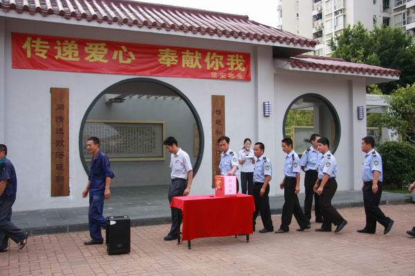 2012年9月12日前?;▓@廣場譜寫了一曲愛的樂章,常安物業(yè)全體員工為救助身患重病的同事紛紛慷慨解囊,捐款相助。常安物業(yè)一名普通的秩序維護員溫煥榮,因胃出血在近段時間已進行兩次大手術(shù)治療,至今仍在重病監(jiān)護室未脫離危險,但昂貴的治療費已經(jīng)讓本來生活就很艱難的家庭更加陷入了困境。在得知溫煥榮的情況后,常安物業(yè)在公司內(nèi)部發(fā)起倡議書,倡議得到全體員工的關(guān)注。紛紛在募捐活動中獻上一份愛心,一時間,愛的暖流匯聚了整個前?;▓@,。此次活動共得到愛心款22500元,公司慰問金10000元,總計32500元,公司董事長張武先生將款項親手交給了員工家屬,并希望本次捐款可以解決他們的燃眉之急,并代表常安物業(yè)全體員工衷心的祝愿溫煥榮同志早上康復(fù)。常安物業(yè)員工倡議愛心捐款員工踴躍捐款善款統(tǒng)計張武董事長講話張武董事長將愛心款轉(zhuǎn)交員工家屬困難員工家屬講話