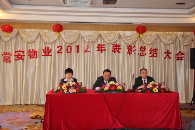 2013年1月25日常安物業(yè)召開了2012年度表彰總結(jié)大會及2013年辭舊迎新晚會。參加會議的主要人員有副總經(jīng)理-黃國義、副總經(jīng)理-蔡愛花、董事長-張武。會議主要對公司在2012年度的各項(xiàng)工作進(jìn)行了匯報(bào)與總結(jié),并制定了2013年的發(fā)展戰(zhàn)略。會議中對2012年度優(yōu)秀員工及先進(jìn)服務(wù)中心及主任進(jìn)行了表彰,并與各服務(wù)中心簽訂了2013年目標(biāo)管理責(zé)任書。