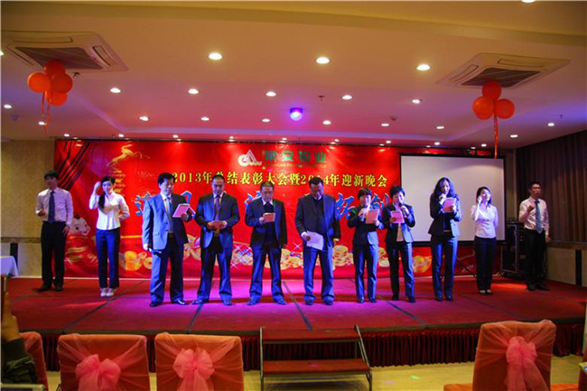 常安物業(yè)年終總結(jié)表彰大會暨迎新晚會于2014年1月17日在學(xué)府路順德佬圓滿結(jié)束。整個活動分為三個環(huán)節(jié)。1、2013年終總結(jié)大會。張總在會議上對公司一年主要工作、取得的成績做了通報,對2013年表現(xiàn)優(yōu)秀的服務(wù)中心、個人給予表彰。2、迎新晚會。各部門、服務(wù)中心的精彩表演;搞笑、歡樂的游戲;激動人心的抽獎將整晚的活動拉向高潮。3、歡樂晚宴。我們共同舉杯,開懷暢飲,慶祝2013年的輝煌,迎接新一輪的挑戰(zhàn)。