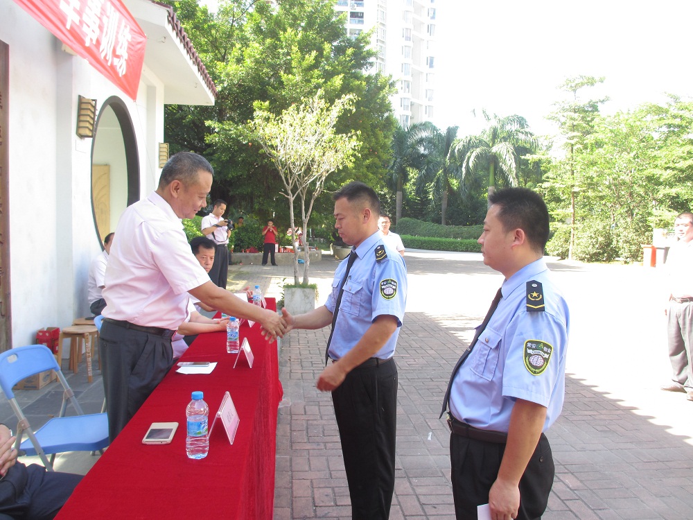 2016年7月29日下午15時,深圳市常安物業(yè)服務有限公司組織退伍軍人在前?;▓@三期廣場舉辦了“常安物業(yè)2016年慶八一軍事訓練”活動。在常安物業(yè)公司領導的高度關注下,退伍軍人不懼高溫的天氣,頂著酷暑完成交通指揮手勢、疊軍被、消防演習三個活動內容,為鼓勵軍事化管理工作的持續(xù)開展,本次活動頒發(fā)了一、二、三等獎。最后,張武董事長進行了精彩的講話,鼓勵退伍軍人把部隊嚴明的組織紀律,嚴謹?shù)墓ぷ髯黠L,嚴肅的工作態(tài)度和不怕吃苦、勇于拼搏、甘于奉獻的好思想、好傳統(tǒng)、好作風帶到各自的工作崗位之中,發(fā)揮“退伍不褪色”的軍人品質。