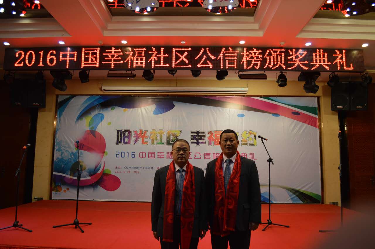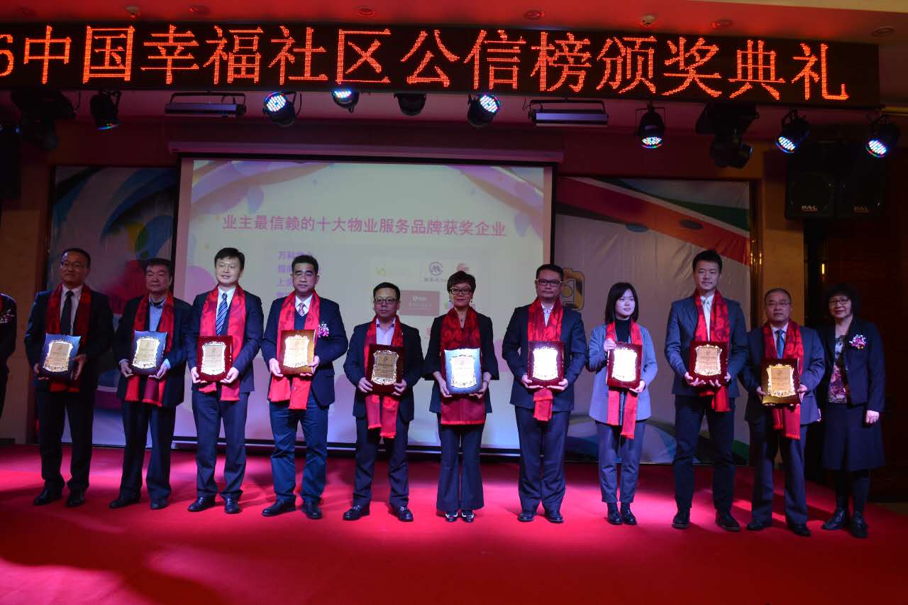 由《住宅與房地產》雜志主辦,物業(yè)管理微信平臺協辦的“2016中國幸福社區(qū)公信榜頒獎典禮”,歷經15天逾百萬人積極投票,于2016年12月28日分別公布了7個獎項的獲獎者及頒發(fā)榮譽獎牌。
