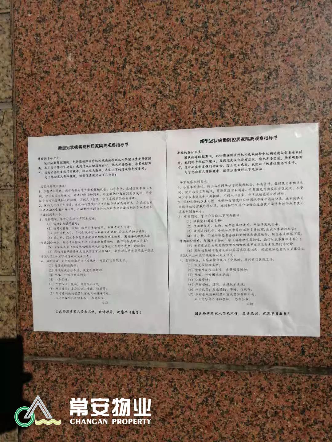 2020年春節(jié)來臨之際,舉國上下緊張地投入到新型冠狀病毒感染的肺炎疫情防控工作之中。為配合政府相關(guān)部門做好本次疫情防范工作,作為防控前線,深圳市常安物業(yè)服務(wù)有限公司積極響應(yīng)政府號召,第一時間啟動應(yīng)急防控預(yù)案,在張武董事長的領(lǐng)導(dǎo)下,啟動一級響應(yīng)抗擊疫情,堅(jiān)決貫徹落實(shí)政府關(guān)于防治“疫情”工作指示精神,帶領(lǐng)全公司項(xiàng)目主任,迅速采取果斷行動,切實(shí)加強(qiáng)預(yù)防“疫情”工作,確保各項(xiàng)防范措施到位,力保常安物業(yè)服務(wù)管轄范圍及在職員工沒有一個“疫情”或疑似病人。我司在抓預(yù)防“疫情”的同時,緊抓各項(xiàng)服務(wù)工作不放松,積極有序地推進(jìn)各項(xiàng)工作的開展。為業(yè)主/住戶和員工的健康平安保駕護(hù)航。