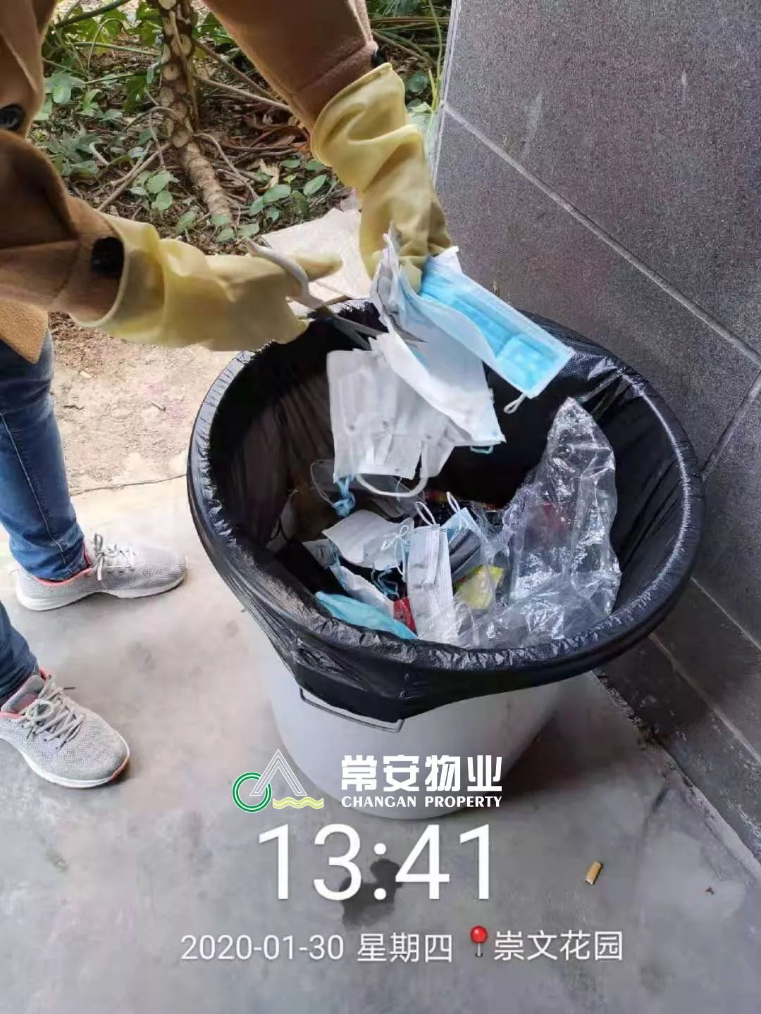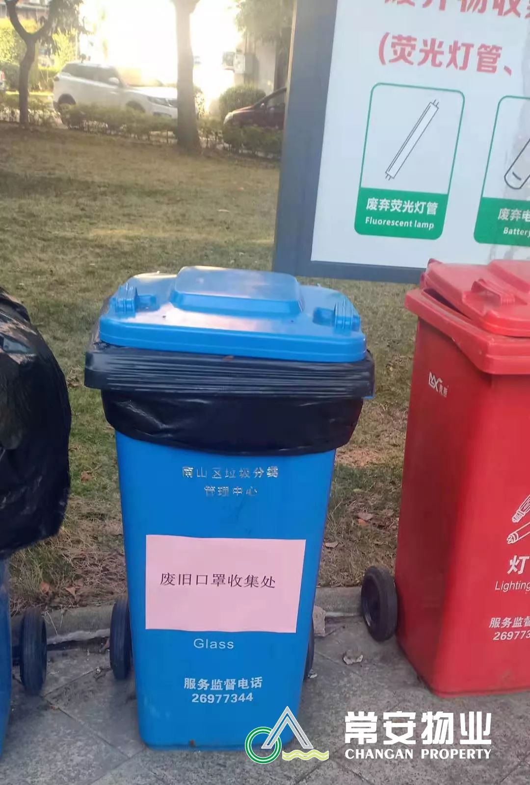 在小區(qū)內(nèi)設(shè)置口罩、手套等專用垃圾桶,要求業(yè)主、住戶將已失效的防護(hù)用品必須銷毀,做到特殊垃圾、特殊處理。