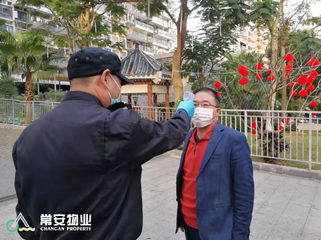 統(tǒng)計返深人員的信息(包括服務(wù)中心的員工)及外來流動人員情況,做好體溫測量和記錄。截止2020年1月30日,我司共計采購紅外體溫儀器70余套,對在管項(xiàng)目業(yè)主/住戶、外來人員和值班人員共計測量體溫五千余次。確保常安物業(yè)管理區(qū)域業(yè)主及公司員工生命安全”