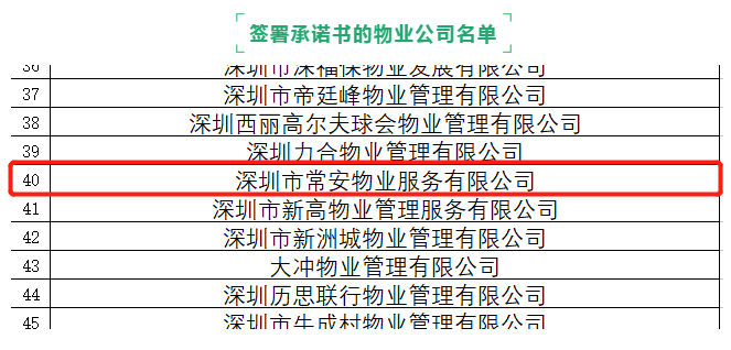 2020年9月17日,深圳市消委會(huì)、深圳市住房和建設(shè)局、深圳市物業(yè)管理行業(yè)協(xié)會(huì)召開(kāi)深圳市物業(yè)服務(wù)行業(yè)監(jiān)督暨自律公約新聞發(fā)布會(huì),發(fā)布了加入《深圳市物業(yè)服務(wù)行業(yè)自律公約》(以下簡(jiǎn)稱(chēng)《自律公約》)的407家物業(yè)服務(wù)企業(yè)名單,深圳市常安物業(yè)服務(wù)有限公司志愿簽署該公約,成為自律物業(yè)服務(wù)行業(yè)中的一員。