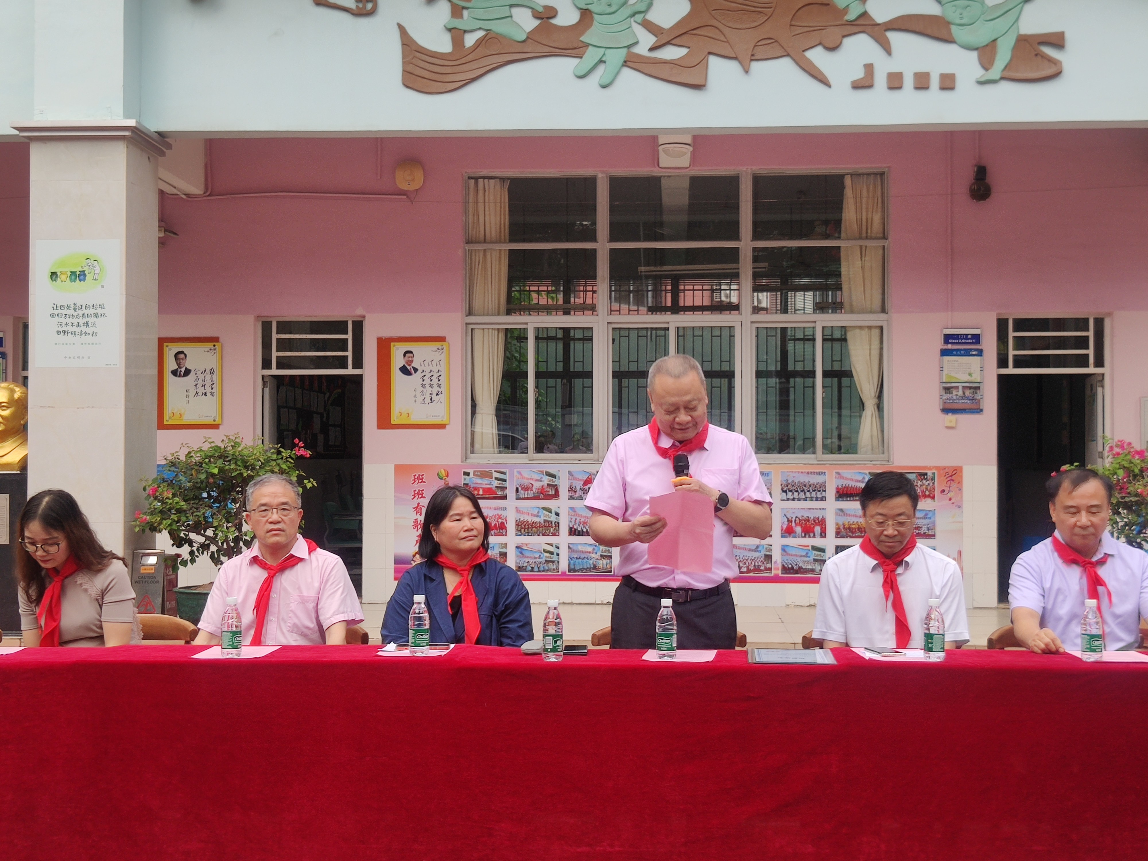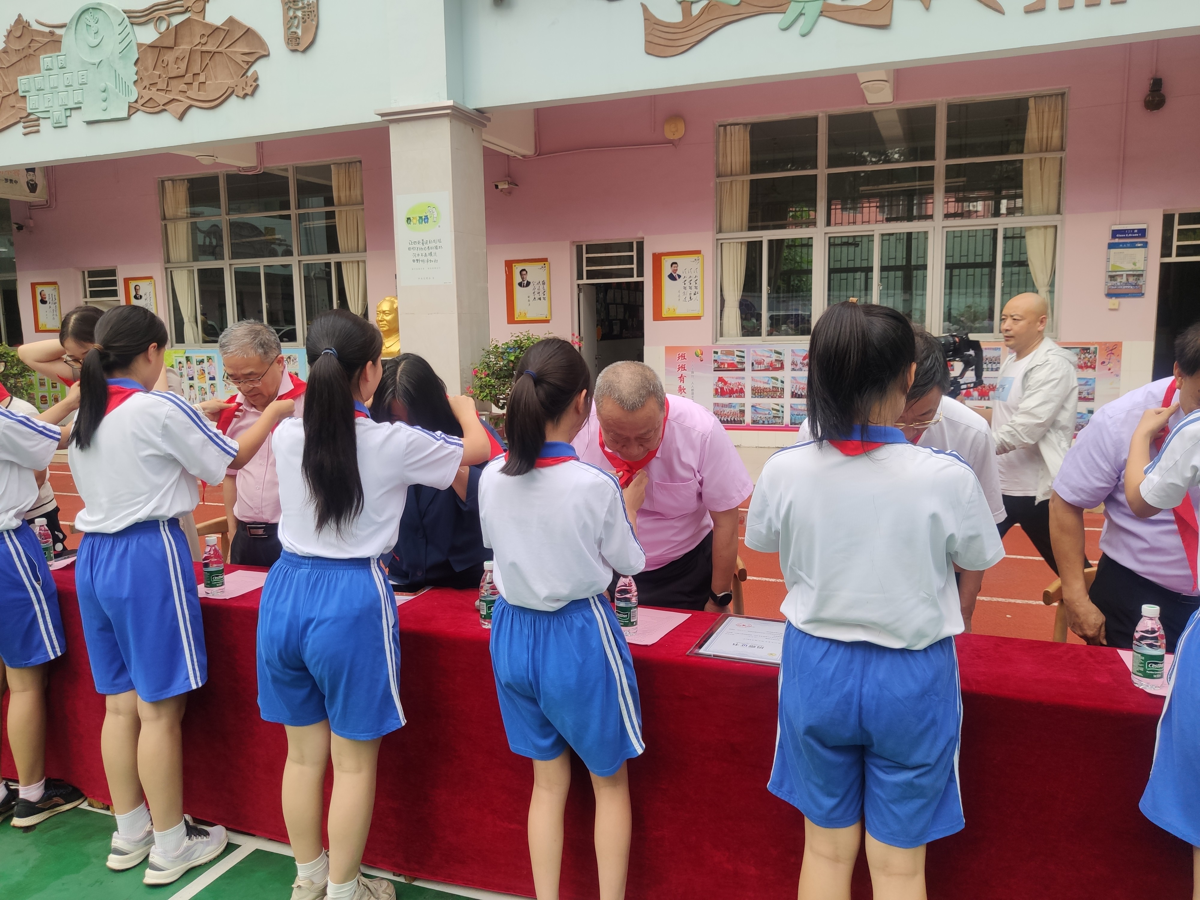 6.東灣小學(xué)少先隊(duì)員為在座的領(lǐng)導(dǎo)系紅領(lǐng)巾。