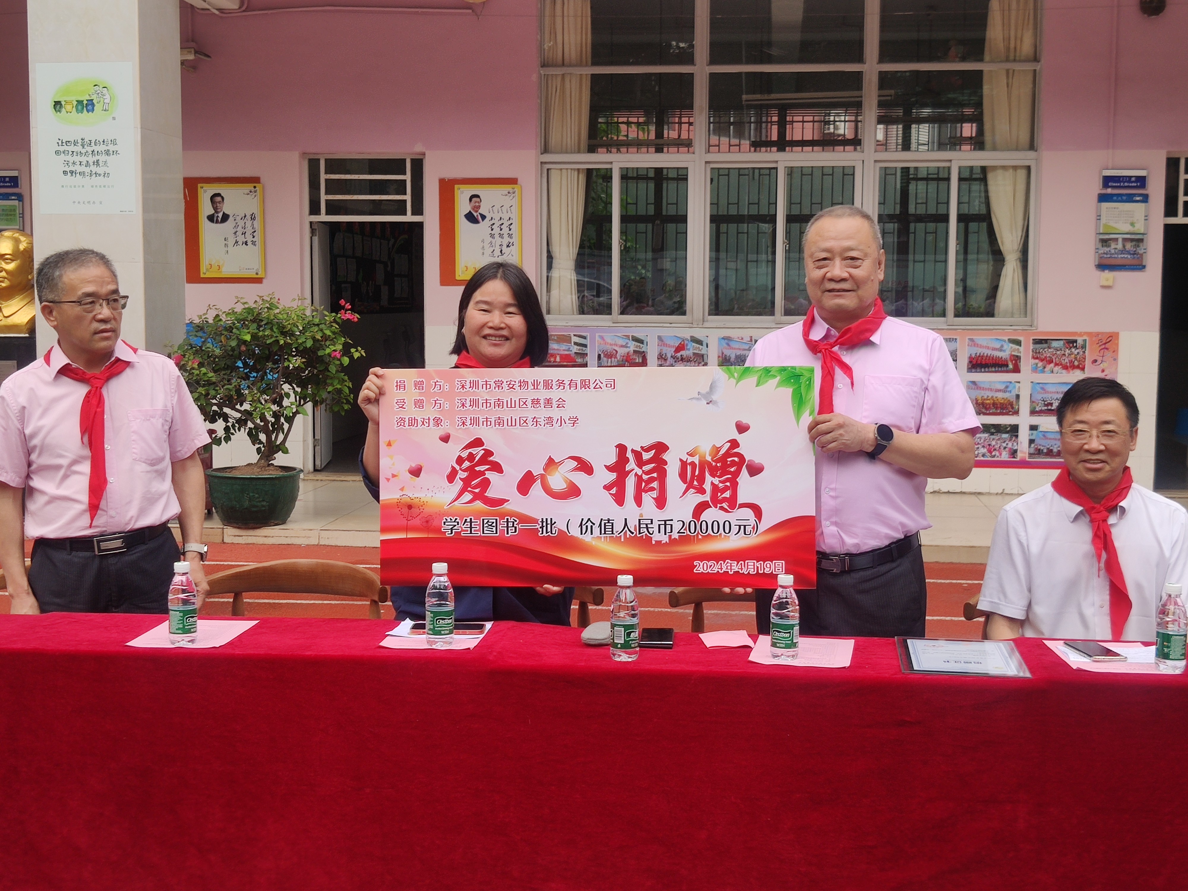 4.深圳市常安物業(yè)服務(wù)有限公司向東灣小學(xué)捐贈(zèng)價(jià)值20000元圖書一批。